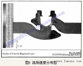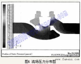 (5)从流线图可以清楚地看到(图略)。在上阀腔的右下侧以及下阀腔左上侧有较大范围的漩涡,并在上阀腔右下侧形成了剧