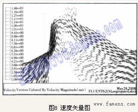 (3)从速度矢量图可知,如图8所示。经阀芯流出的主流集中在管的顶部,流速不均匀。