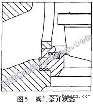 图5为阀门全开外形,弹性软密封环复原弹性。