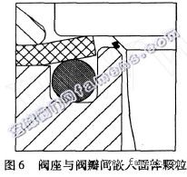 关于夹带固体颗粒的流体介质,软阀座阀门的密封布局越发重要。这主要是因为介质中夹带有固体颗粒时,极简单卡在阀瓣和阀座的密封面之间,妨碍了阀座的密封,会惹起泄漏,继而因为介质的高速冲刷而使阀座外观被冲蚀粉碎。关于上述存在二级封闭劝化的软阀座密封布局(图6),即使出现了这种颗粒卡在阀瓣和阀座金属密封部位之间,也不会有甚么损害,因为另有阀瓣和软阀座之间的密封,仍能起到可靠有效的填补密封劝化。